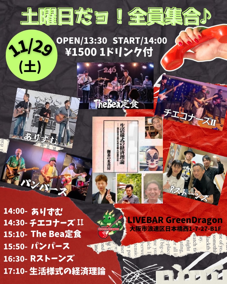 【グリーンドラゴン2周年LIVE 2日目】 2025.10.19(土)11:30OPEN 12:30START 1500円1ドリンク付グリーンドラゴン2周年LIVE 2日目 開催します♬出演者様・パンパース・… -