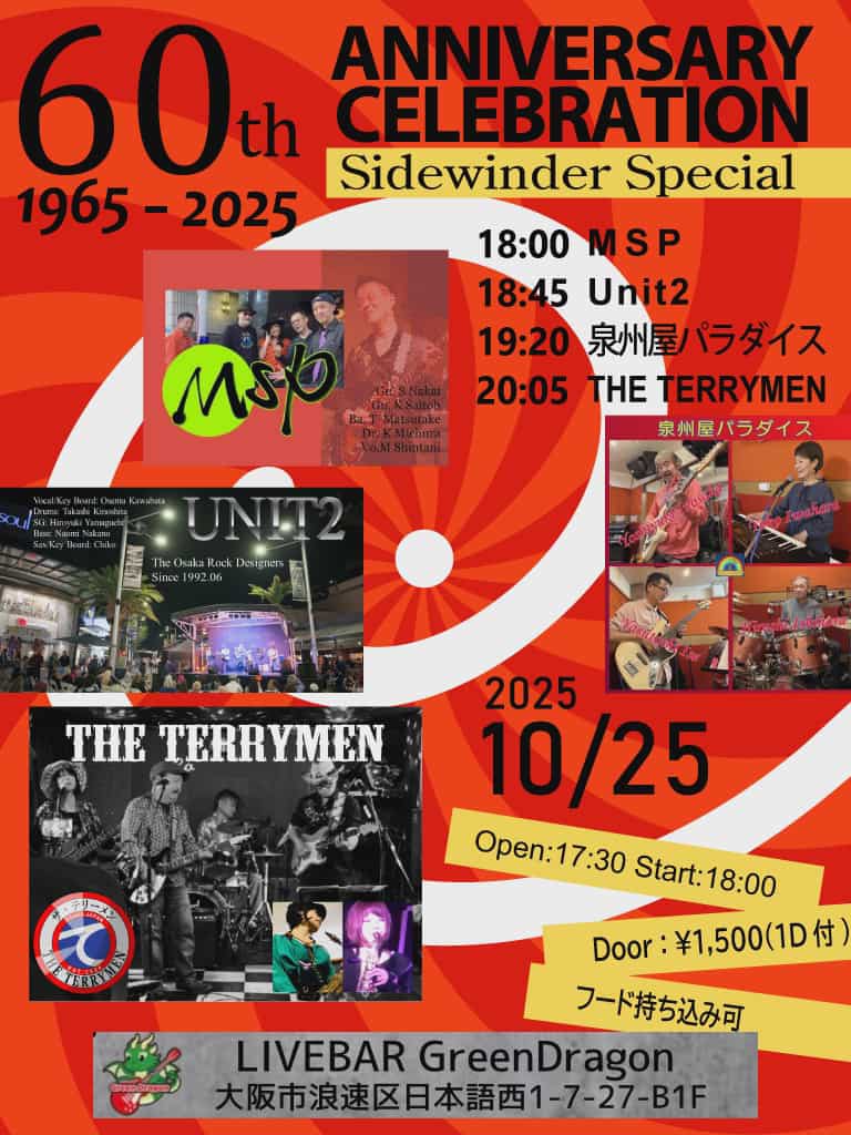 【60th ANNIVERSARY CELEBRATION Sidewinder Special】 2025.10.25(土)17:30OPEN 18:00START 1500円1ドリンク付60th ANNIVERSARY CELEBRATION Sidewinder Special開催… -