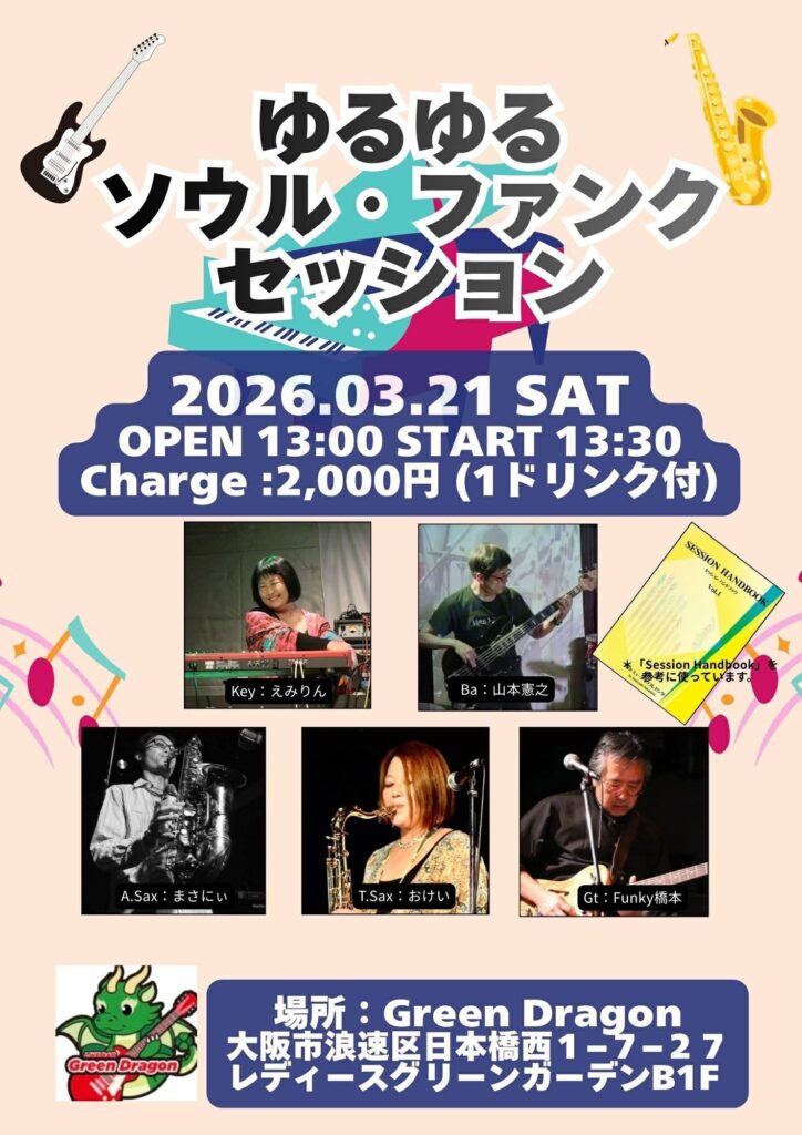 【ゆるゆる ソウル・ファンクセッション】 2026.3.21(土)13:00OPEN 13:30START 2000円1ドリンク付ゆるゆるソウル・ファンクセッション開催されます♬皆様のお越しをお待… -