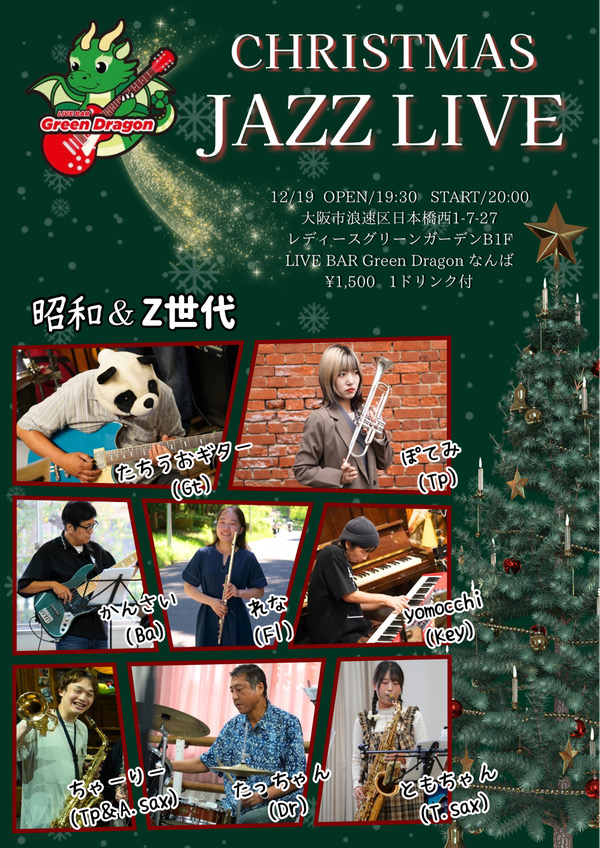 CHRISTMAS JAZZ LIVE【CHRISTMAS JAZZ LIVE】 2025.12.19(金)19:30OPEN 20:00START 1500円1ドリンク付CHRISTMAS JAZZ LIVE開催されます♬出演者様・昭和&Z世代 皆様のお越しをお待ちしてお…