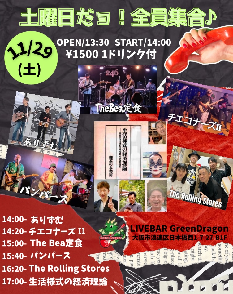 土曜日だョ!全員集合♪LIVE【土曜日だョ!全員集合♪LIVE】 2025.11.29(土)13:30OPEN 14:00START 1500円1ドリンク付土曜日だョ!全員集合♪LIVE開催されます♬出演者様・ありずむ・チエコナー…
