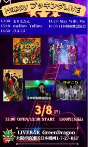 2026.3.8(日)13:00OPEN 13:30START 1500円1ドリンク付
