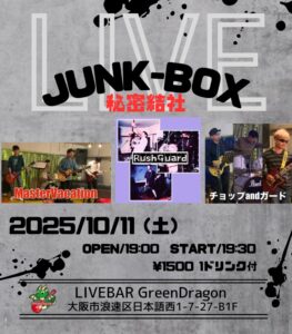 秘密結社 JUNK-BOX LIVE 開催します♬