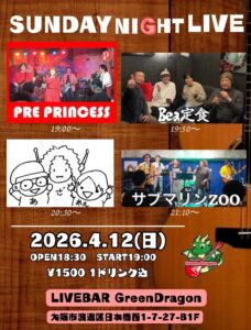 2026.4.12(日)18:30OPEN 19:00START 1500円1ドリンク付
